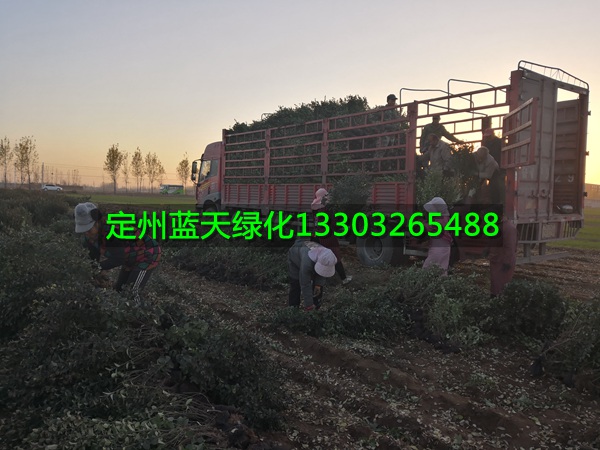 山东省齐河县市政道路绿化苗木卫矛60高度卫矛价格冬青70公分高度卫矛冬青工人装车现场