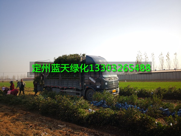 山东省济南市政道路绿化苗木卫矛60高度卫矛价格70高卫矛价格冬青工人装车现场图片